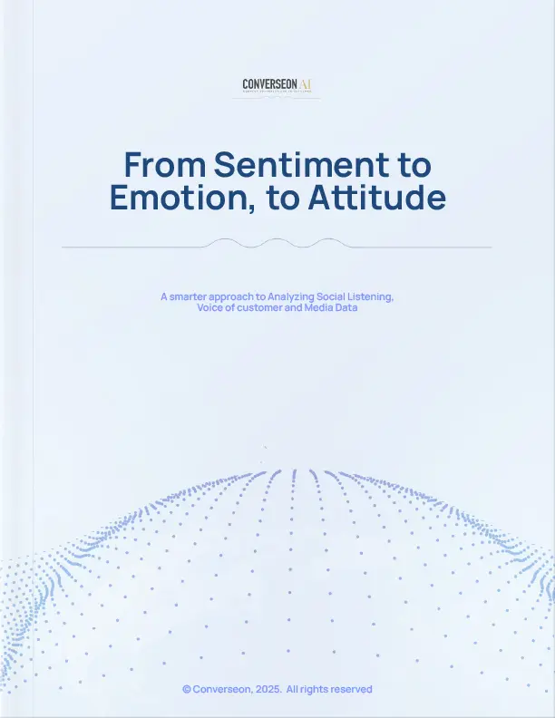 Traditional sentiment and emotion analysis often miss the deeper “why” behind consumer expression. This whitepaper introduces the Conversus Attitude Framework™, Converseon’s next-generation NLP model that moves beyond simple sentiment to reveal actionable intent, tone, and behavioral signals within unstructured social, media, and customer data.